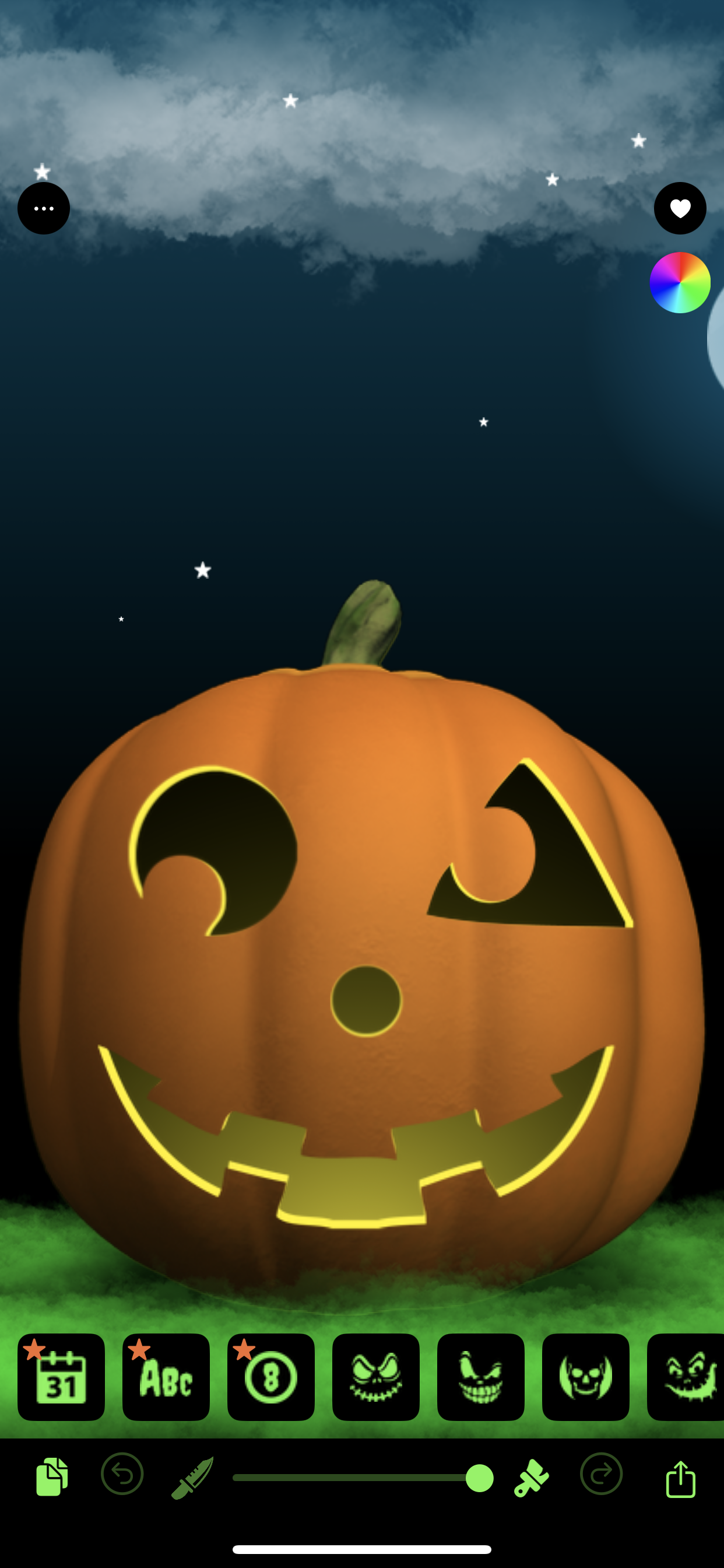 03Etch custom text right into the pumpkin face. Spooky lettering, holiday greetings, names — then share your haunted masterpiece with the world.